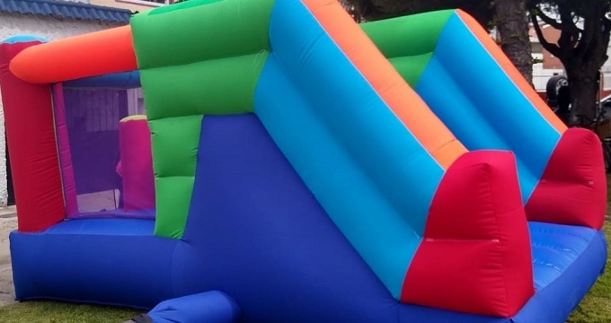 Alquiler de equipo Inflable (Happy Aventuras) Medidas aproximadas; 4 Mts de fondo, 2.50 mts de ancho, 2.30 mts de alto. Motor eléctrico corriente 110 voltios.